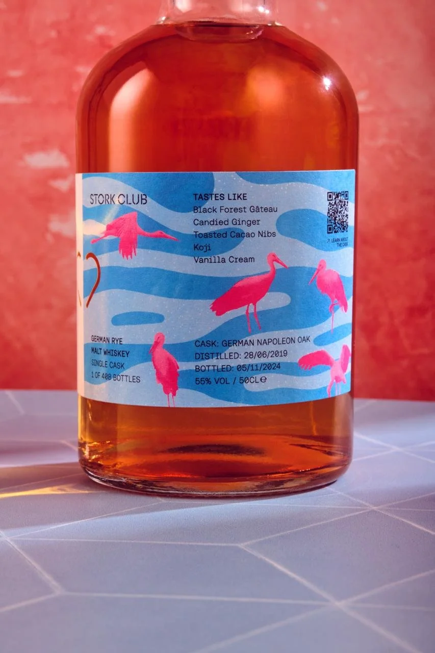 The brief for the Stork Club release called for a design that echoed the brand’s bold, two-tone label style, with a playful use of pattern. My client asked for the Stork Club’s signature stork to feature prominently. They also suggested a colourful pattern approach to tie everything together.